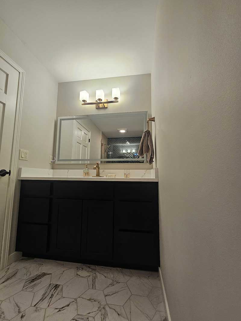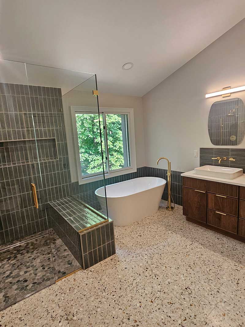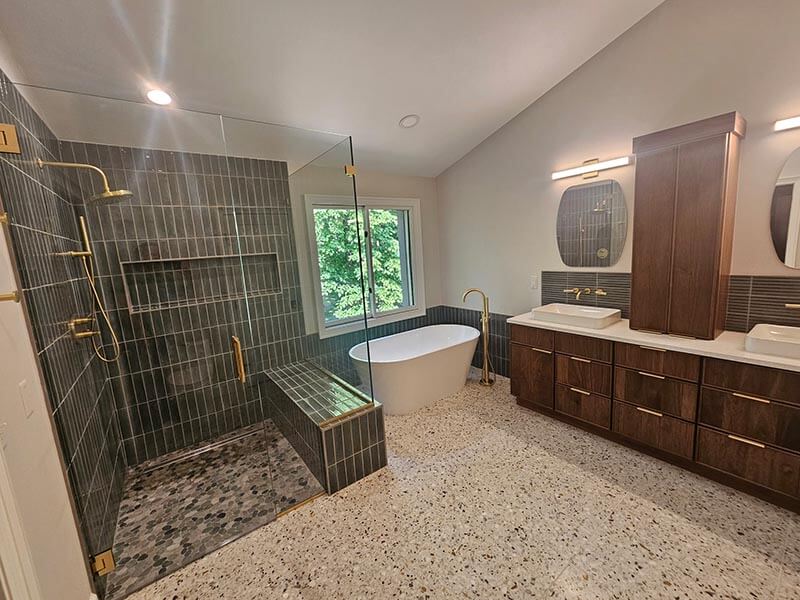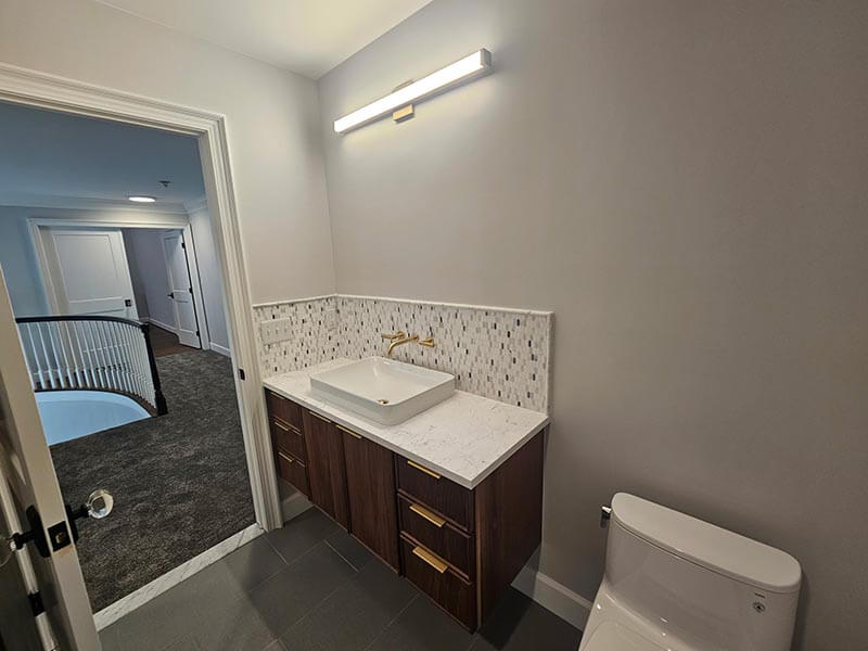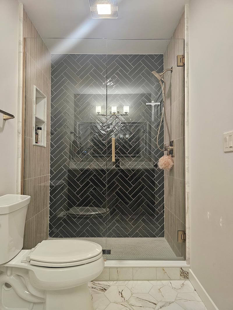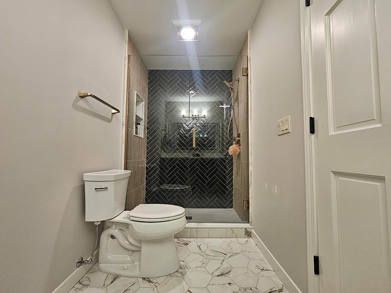 Designed for both function and indulgence, the space features custom tilework, sleek fixtures, and a spa-inspired layout that invites calm. Every detail—from lighting to layout—reflects a commitment to craftsmanship and comfort, turning a daily routine into a refined experience.